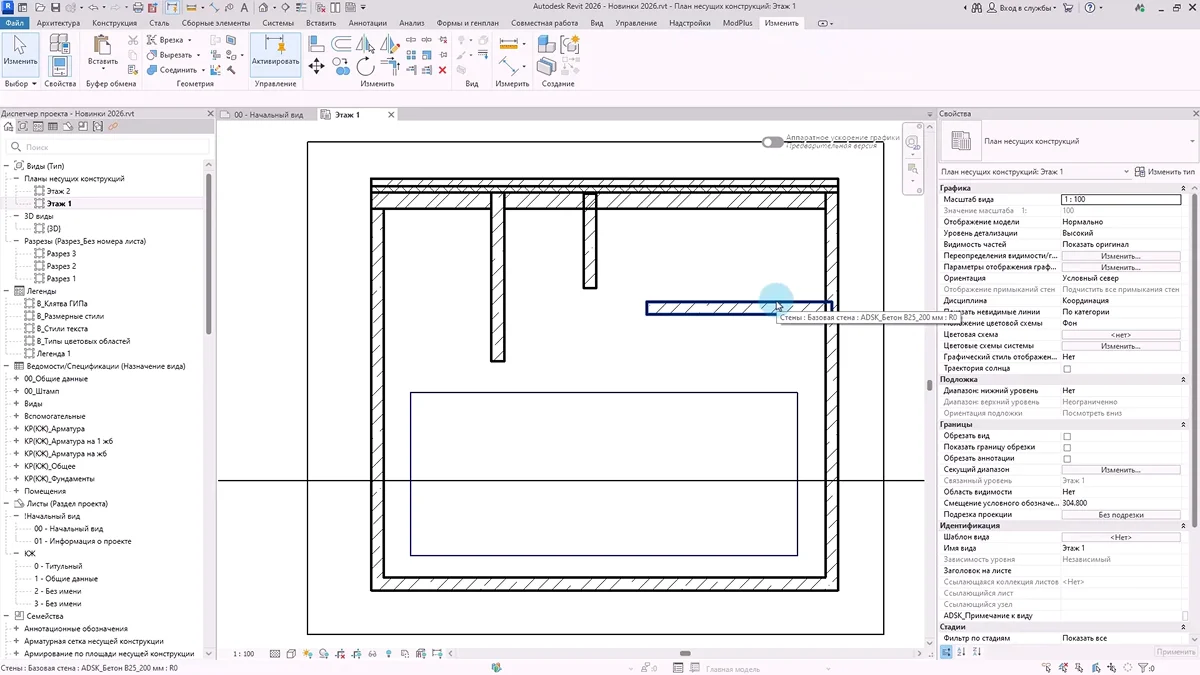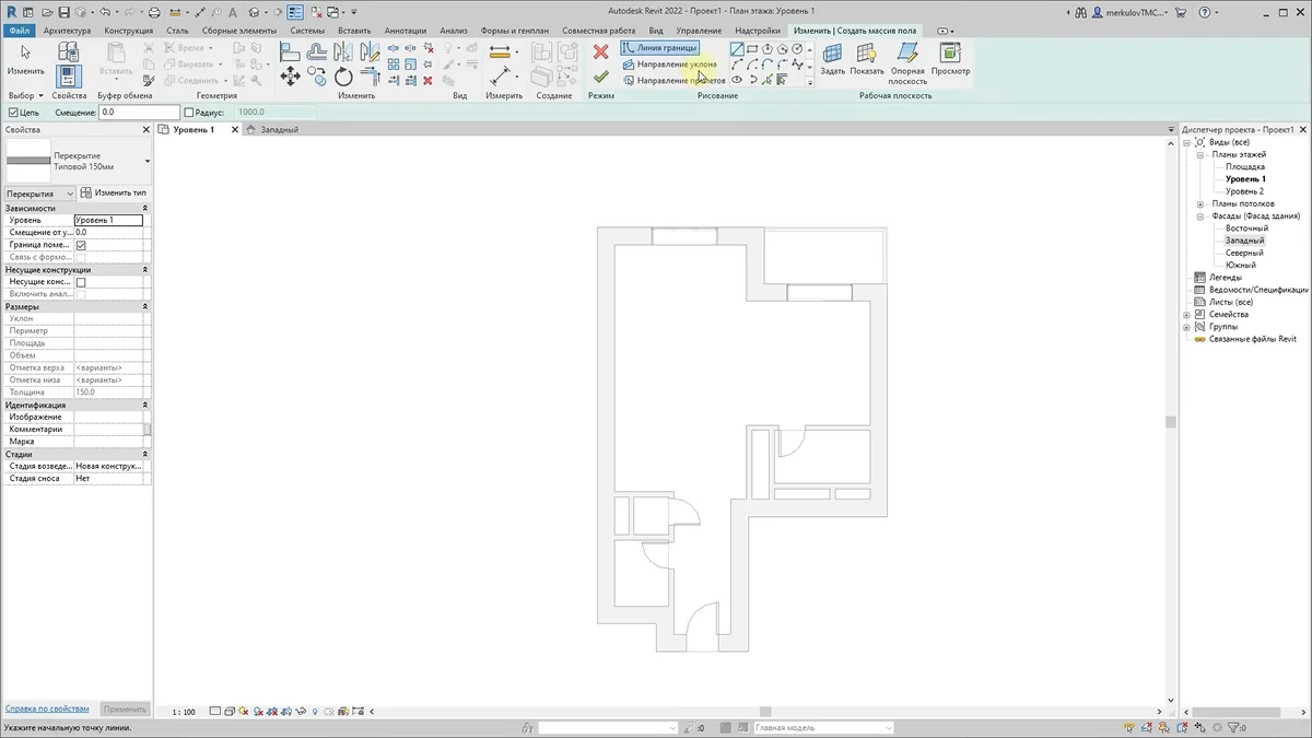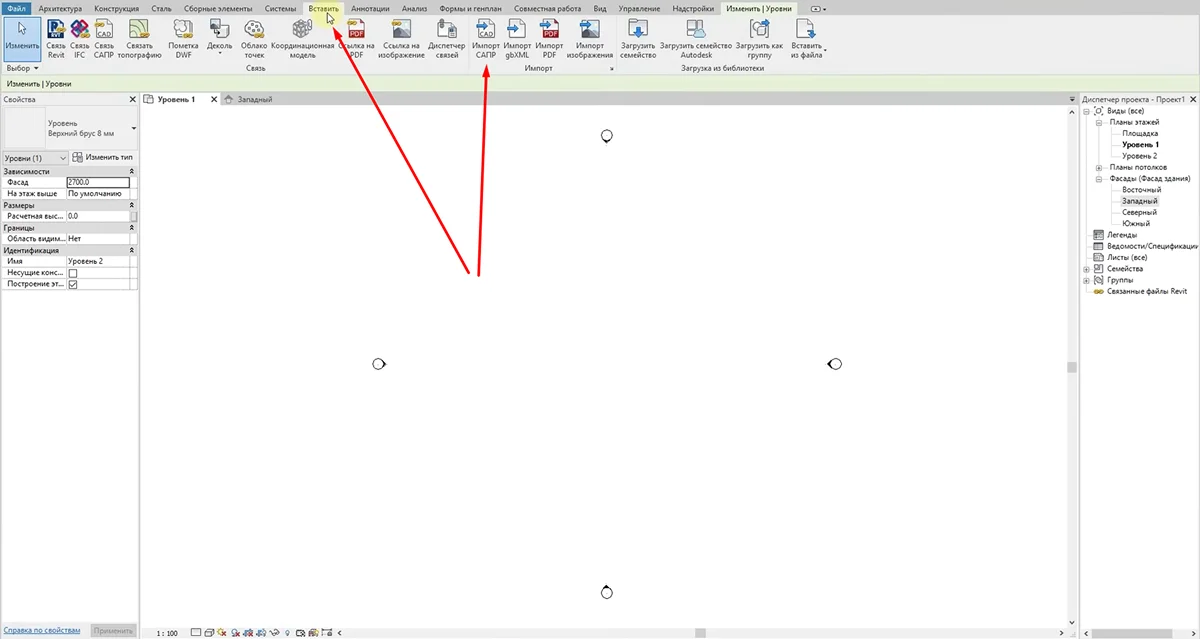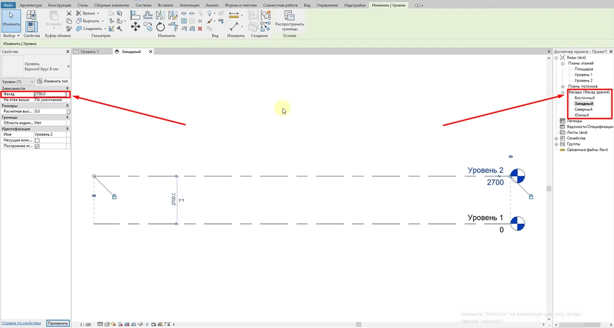 - Создание уровней. Это опорные плоскости, которые управляют количеством и высотой этажей.