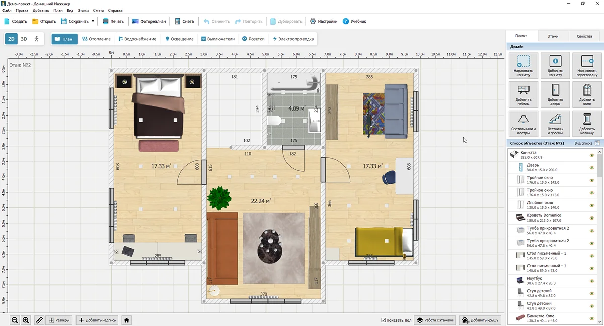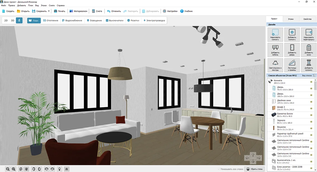 Домашний Инженер 3D — это программа для комплексного планирования коммуникаций. Она рассчитана прежде всего на новичков-проектировщиков и тех, кто хочет самостоятельно обустроить свою квартиру или коттедж. В статье расскажем о возможностях софта и о том, как Домашний Инженер 3D скачать бесплатно.